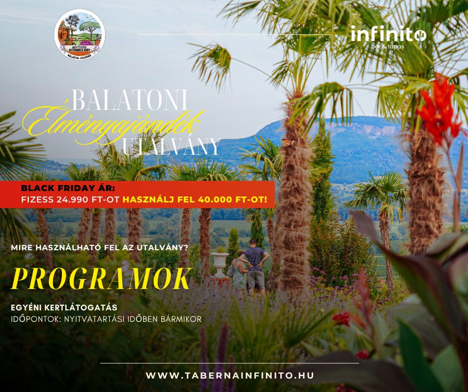 Fedezd fel a Taberna Infinito Balatoni Panoráma Étterem és a Balatoni Mediterrán Botanikus Kert különleges világát – és ajándékozz igazi balatoni élményt szeretteidnek!