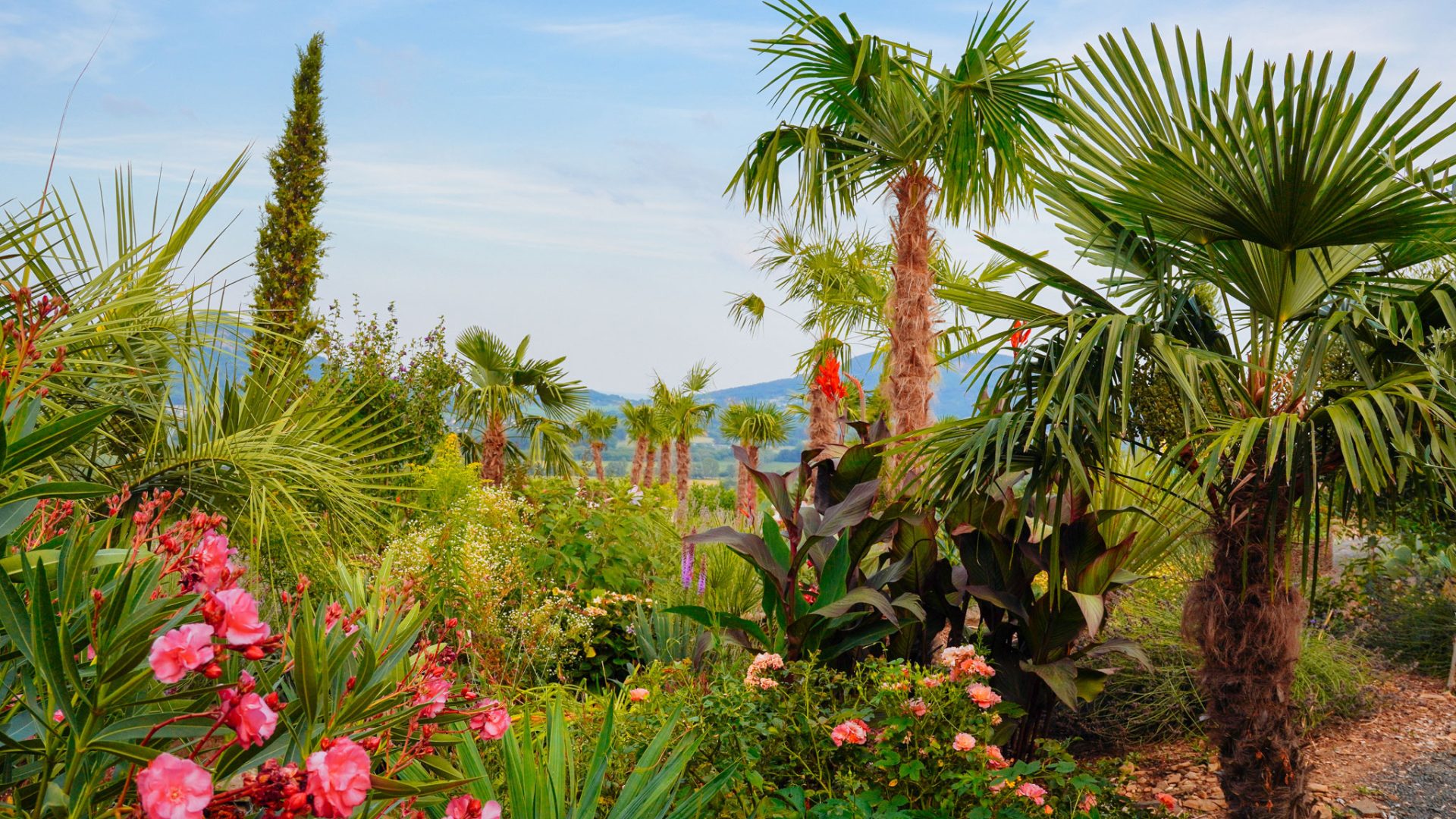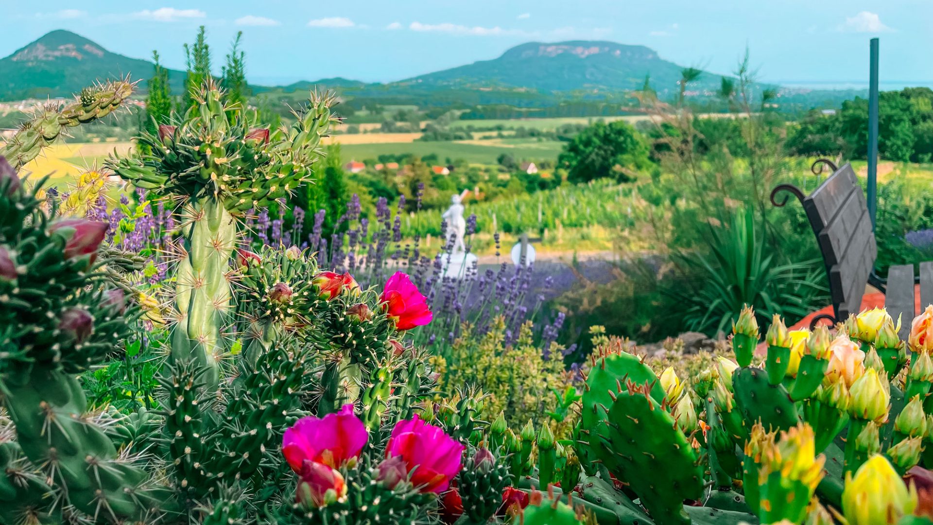 Sétálj a pálmák és mediterrán növények között, miközben a Balaton varázslatos látványa vesz körül.